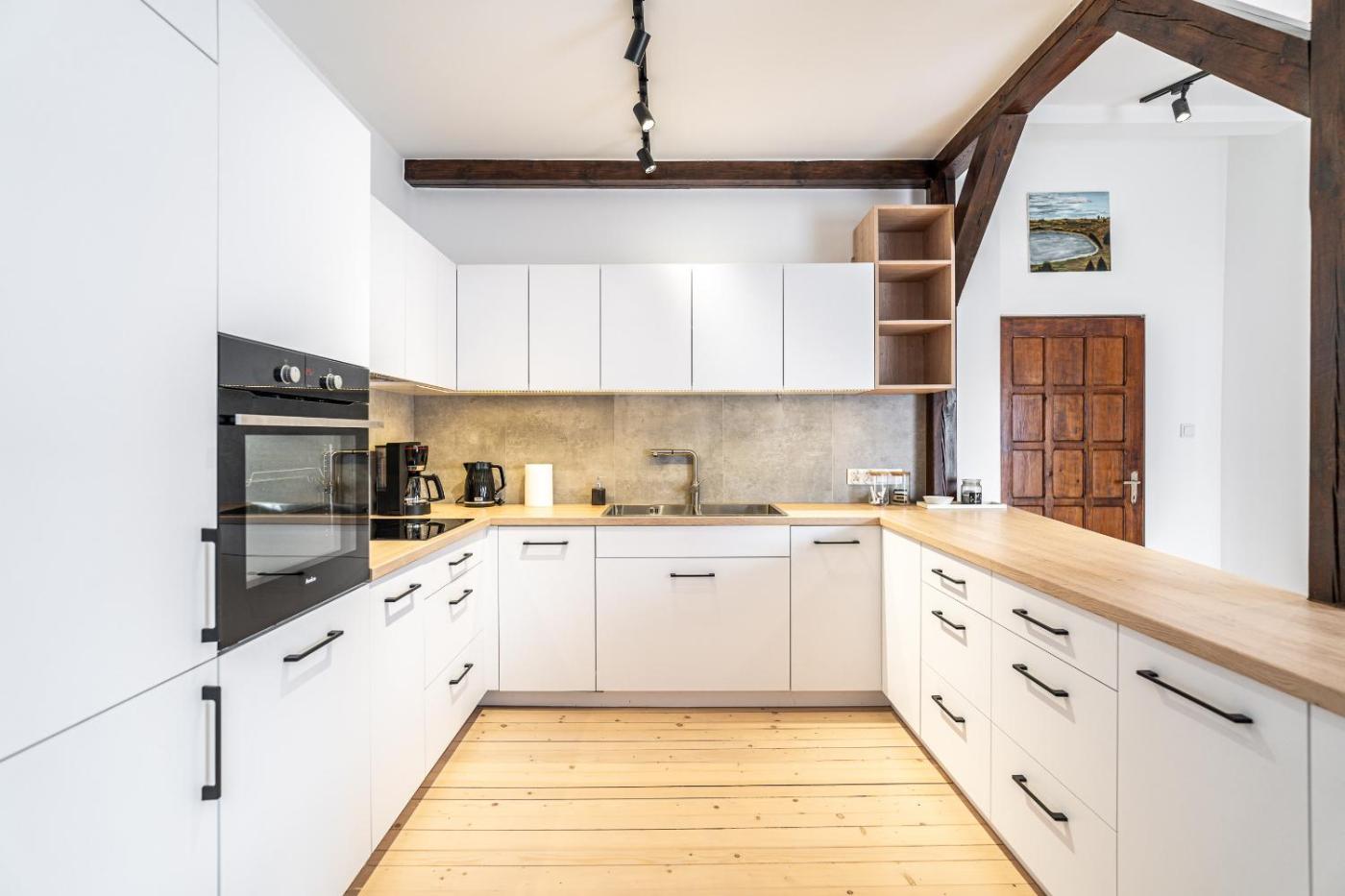Apartament typu Superior z balkonem. This spacious apartment comes with 2 living rooms, 1 separate bedroom and 1 bathroom with a bath and free toiletries. Meals can be prepared in the kitchenette, which features a stovetop, a refrigerator, a dishwasher and kitchenware. The apartment features a flat-screen TV with streaming services, a washing machine, a private entrance, a tea and coffee maker as well as ancourtyard view. The unit has 2 beds. Apartament - 4 osobowy. Powierzchnia pokoju ok.: 65 mkw. ;