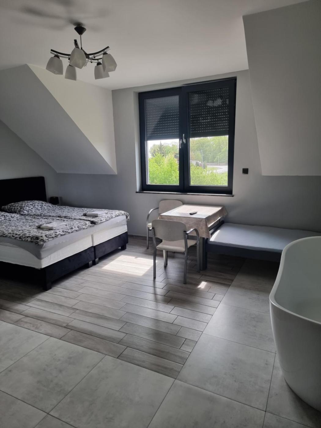Pokój Dwuosobowy typu Deluxe z wanną. The double room offers air conditioning, a tea and coffee maker, as well as a private bathroom featuring a bath and a shower. Guests will find a stovetop, a refrigerator, kitchenware and a microwave in the well-fitted kitchen. The double room also has a barbecue. The double room features a dining area, a wardrobe, a tiled floor, a flat-screen TV, as well as garden views. The unit offers 2 beds. Pokój Dwuosobowy - 3 osobowy. Powierzchnia pokoju ok.: 25 mkw.