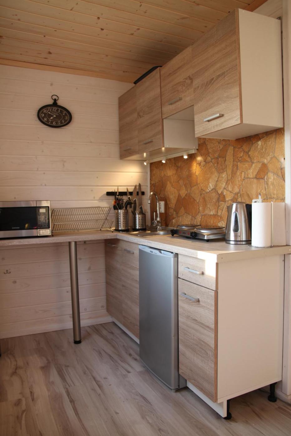 Domek. Guests will find a stovetop, a refrigerator, kitchenware and a microwave in the well-fitted kitchen. The chalet also comes with a barbecue. The chalet features a tea and coffee maker, a seating area, a terrace with garden views as well as a private bathroom boasting a shower. The unit has 2 beds. Domek - 3 osobowy. Powierzchnia pokoju ok.: 20 mkw.