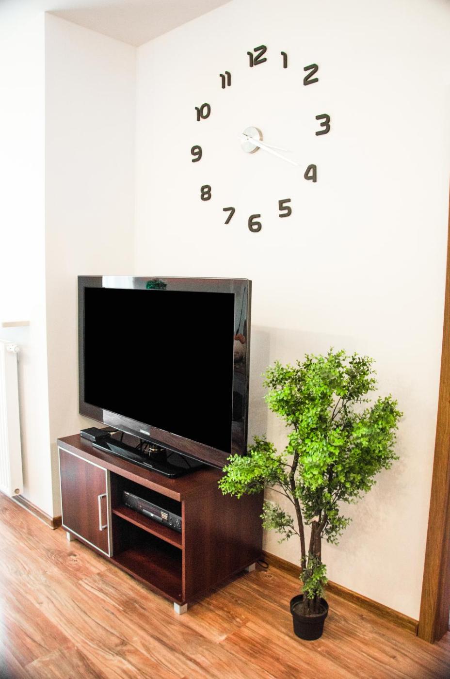Apartament z 1 sypialnią. Boasting a private entrance, this apartment comes with 1 living room, 1 separate bedroom and 1 bathroom with a bath and a hairdryer. The well-fitted kitchenette has a stovetop, a refrigerator, kitchenware and a microwave. Featuring a balcony with city views, this apartment also features a washing machine and a flat-screen TV with cable channels. The unit has 3 beds. Apartament - 5 osobowy. Powierzchnia pokoju ok.: 41 mkw.